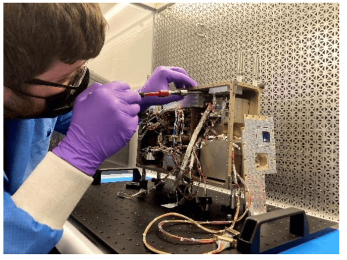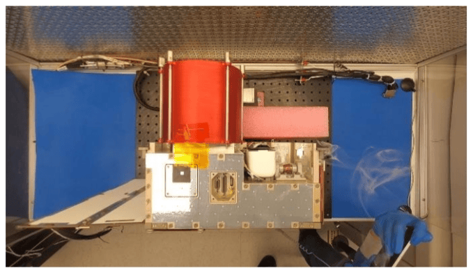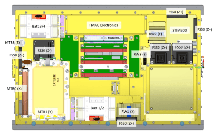 为此对飞翔软件进行升级,图示完整飞翔系统堆叠布局,测试正在密封定制运输箱内进行。以改善集成测试期间对电子磁谱仪和无线电设备的操做可达性。数据靠得住性受影响。